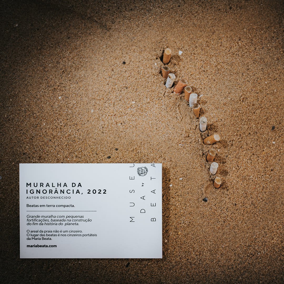 Nesta campanha provocativa ironizamos a “criatividade” daqueles que deitam fora as beatas de cigarro nos lugares mais inusitados. A ideia parte de uma mecânica simples: encontrar beatas descartadas que se parecem com obras de arte ou monumentos, identificá-las com placas provocativas e limpá-las, não sem antes adicionar cada peça ao Museu da Beata, uma exibição numa galeria virtual no nosso Instagram.